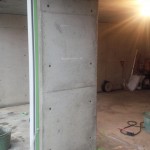 ローラーやスタンプマットで模様つけです。これは石目調になります。壁やローラーにリリーサー(はくり剤)をつけてからやります。すると壁材がくっつかずきれいに模様が付きます。